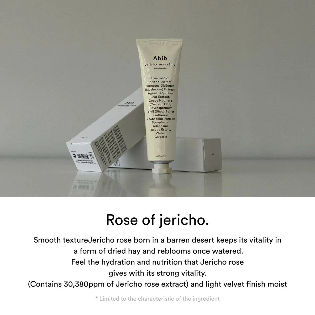 Jericho Rose Crème Nutrition Tube hydrate en profondeur les couches internes de votre peau grâce à la présence de 30 380 ppm d'extrait de rose de Jéricho.